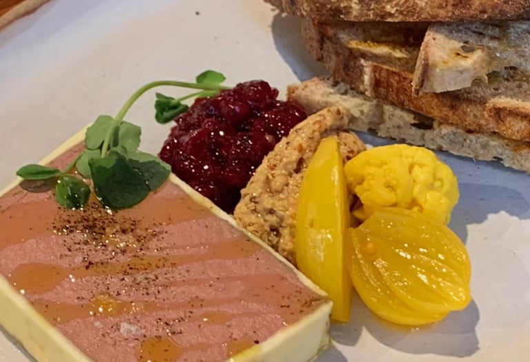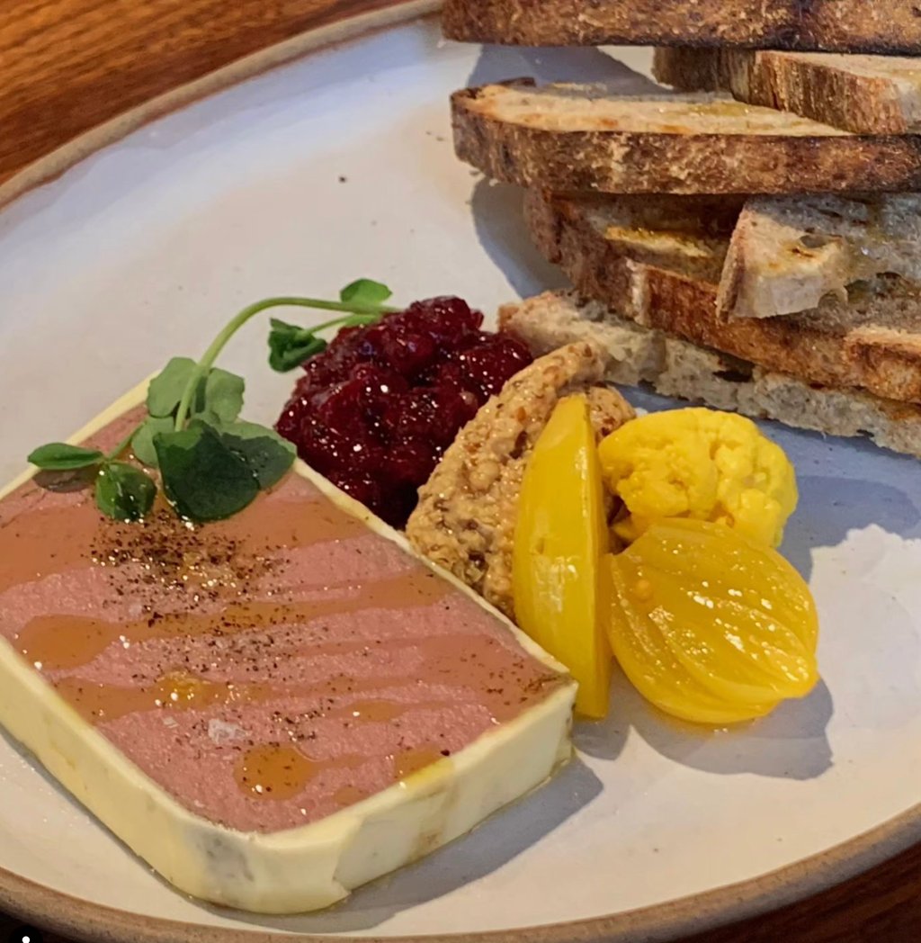 Wild Acre Farms chicken liver, housemade pickles and mustard, haskap compote, sourdough.